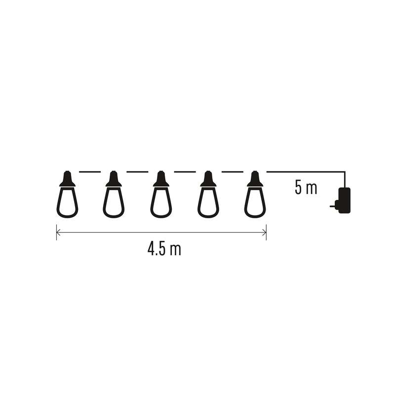LED světelný řetěz – 10x párty žárovky, 4,5 m, venkovní i vnitřní, vintage == barva drátu: černá|barva světla: vintage|časovač: ne|dálkový ovladač: ne|délka přívodu: 5 m|krytí: IP44|materiál: plast|počet LED: 100|použití: venkovní i vnitřní|příkon: 5 W|prodejní obal: 1 ks, krabice|produkt: girlanda|rozměr: 4,5 m|typ napájení: síťový adaptér|vstupní napětí: 230 V AC|výstupní napětí: 5 V DC|záruční doba: 2 roky|zdroj svícení: LED|životnost: 10 000 hodin