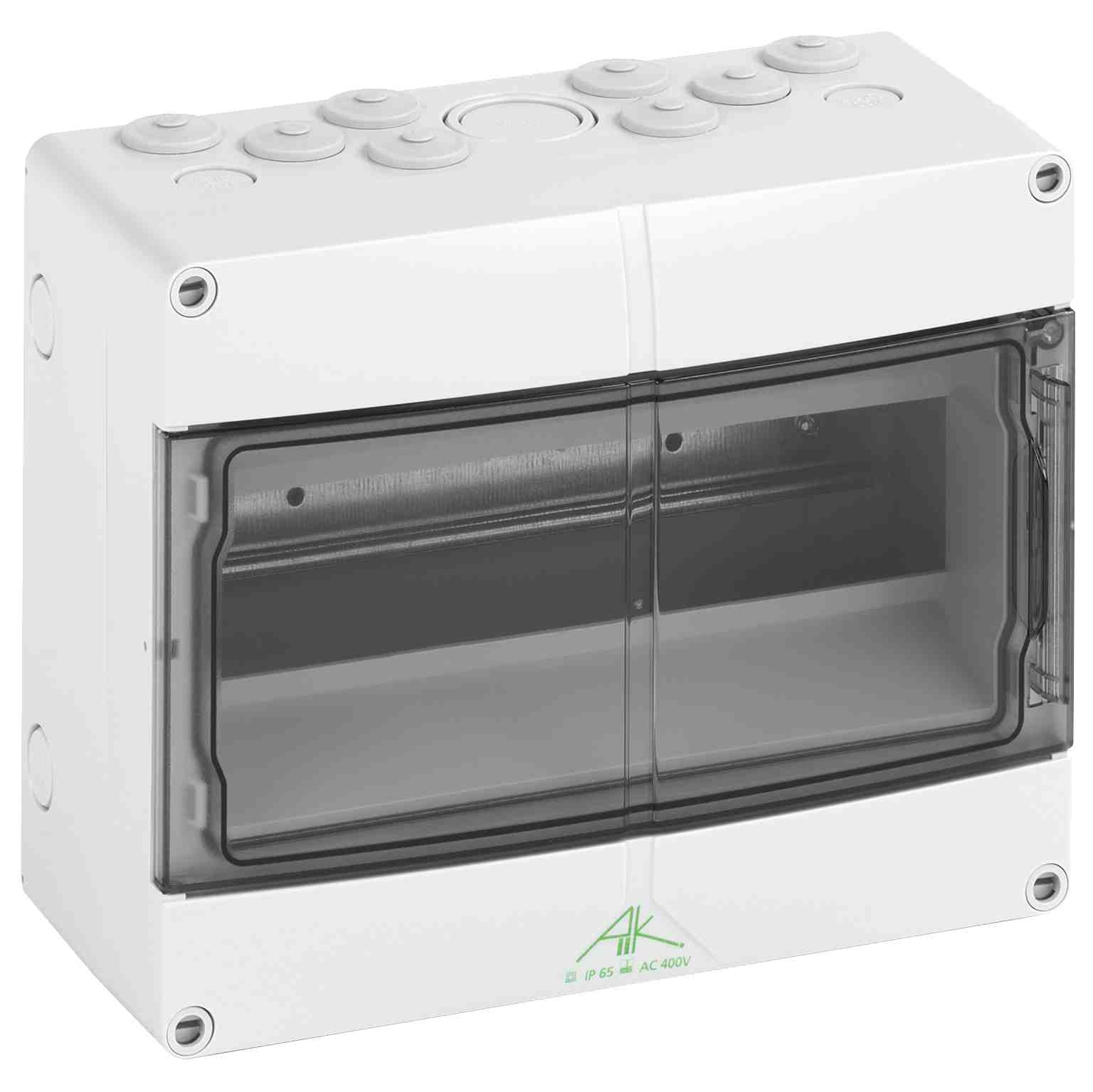 Malý rozvaděč, se stupněm krytí IP65, 1 Řada, 12 Dostupné moduly, Domezovací provozní napětí: 400V AC, Domezovací izolační napětí: 1000V AC, 1000V DC, nahoře a dole metrické předlisy pro univerzální vstup vodičů se šroubením a / nebo dvojitými membránovými vývodkami, nahoře s předmontovanými pružnými průchodkami DMS M20, s upínací lištou PE/N vždy se 2 místy upnutí 16 mm? a 10 místy upnutí 6 mm? Rozměry: 250 x 200 x 122 mm Přiložené příslušenství: Dvojitá membránová vývodka: 1x M20, 1x M32, Zaslepovací zátky, Krycí a popisovací pásky
