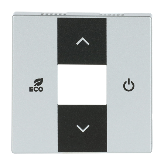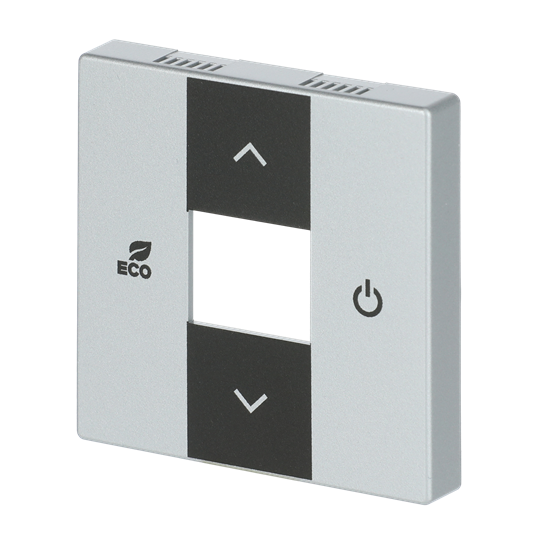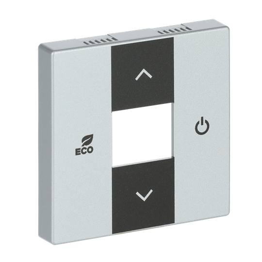 Kryt pro termostat prostorový s 5násobným univerzálním vstupem; hliníková stříbrná; 6109/03-83-500 Vhodné pro designy z vypínačových řad ABB : KNX Objednací číslo : 2CKA006155A0062