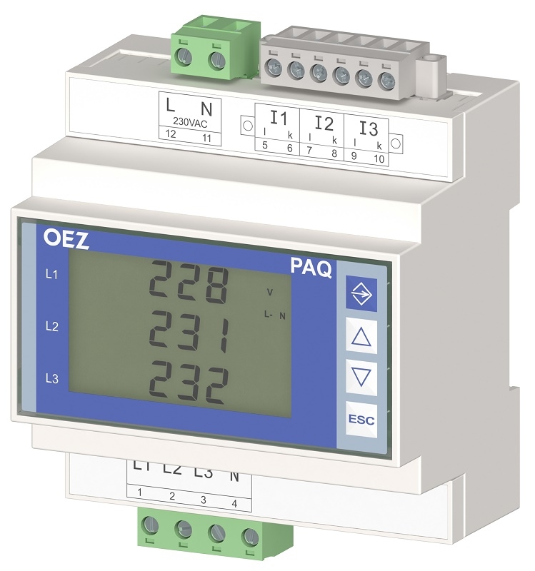 Analyzátor sítě PAQ-51-U024-COM1 měření, DI/DO, RO, komunikace Modbus RTU, napájení 85 ÷ 265 V, montáž na DIN lištu OEZ:46761