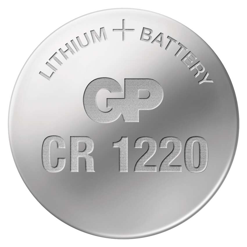 Lithiová knoflíková baterie GP CR1220 == chemické složení: lithiové|hmotnost: 0,8 g|kapacita: 36 mAh (při zátěži 30 kOhm)|kategorie/řada: Lithium|max. skladovatelnost: 10 let|možnost nabíjení: ne|napětí: 3 V|počet nabíjecích cyklů: nenabíjecí|prodejní obal: 5 ks, blistr|provozní teplota: -20 °C až +60 °C|rozměr: 12,5 × 2,0 mm|typ: GP CR1220|velikost baterie: neuvádí se|značka: GP