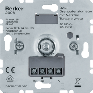 Berker 2998 Potenciometr, otočný, DALI, s integrovanou jednotkou napájení, dom. elektronika