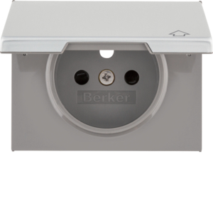 Berker 3965777103 Centrální díl pro zásuvku se zemnícím kolíkem s ochrannou proti dotyku s víčkem, Berker K.5, Alu