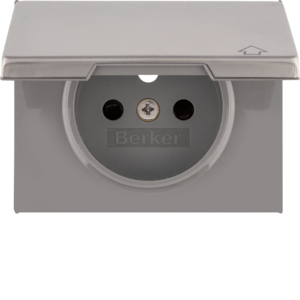 Berker 3965777104 Centrální díl pro zásuvku se zemnícím kolíkem s ochrannou proti dotyku s víčkem, Berker K.5, ušlecht. nerez. ocel
