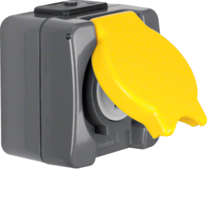 Berker 4286 Zásuvka, se zemnícím kontaktem, NEMA 5-15 R, 125 V~, "USA/Kanada", šroubovací svorky, ISO-Panzer IP44, tm. šedá/žlutá