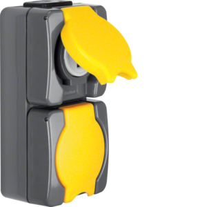Berker 4294 Zásuvka dvojnásobná, se zemnícím kontaktem, NEMA 5-20 R, 125 V~, "USA/Kanada", šroubovací svorky, ISO-Panzer IP44, tm. šedá/žlutá