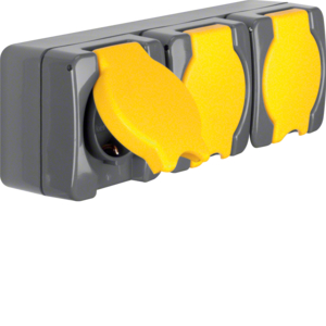 Berker 4323 Zásuvka, 3x SCHUKO, kombinovaná, s klapkami, 16 A, 250 V~, vodorovná montáž, ISO-Panzer IP44, tm. šedá/žlutá