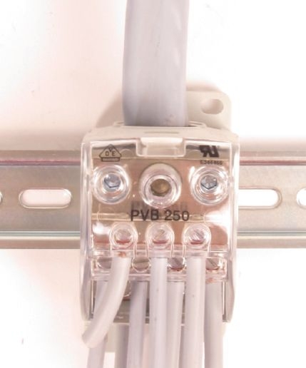 Blok pro rozdělení fází PDB 400 (PVB 250), 1pól., 400A, 690V, šedý/průhl. víko, na DIN *1004010 eleman