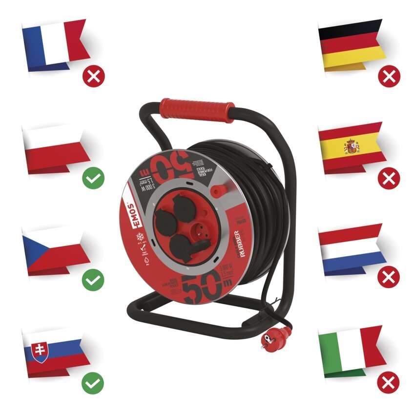 Venkovní prodlužovací kabel na bubnu 50 m / 4 zásuvky / černý / guma / 230 V / 1,5 mm2 == barva kabelu: černá|další funkce: vodící oko, brzda cívky|délka: 50 m|dětské clonky: ne|hmotnost: neuvádí se|krytí: IP44|max. zatížení navinutého: 4,8 A max./1 100 W|napětí: 230 V~|počet zásuvek: 4|prodejní obal: 1 ks, krabice|produkt: buben s pohyblivým středem|proud: 13 A|průřez vodiče: 1,5 mm?|rozměr: 285 mm|tepelná pojistka: ano|typ izolace: guma|vodič: H05RR-F3G|záruční doba: 3 roky|zatížení rozvinutého: 16 A max./3 000 W