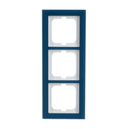 Rámeček trojnásobný, pro vodorovnou i svislou montáž; modré sklo; 1723-228 Vhodné pro designy z vypínačových řad ABB : Ax Objednací číslo : 2CKA001754A4757