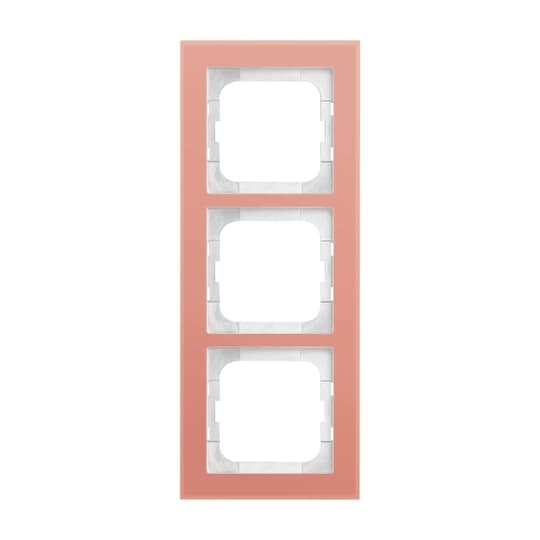 Rámeček trojnásobný, pro vodorovnou i svislou montáž; růžové sklo; 1723-227 Vhodné pro designy z vypínačových řad ABB : Ax Objednací číslo : 2CKA001754A4767