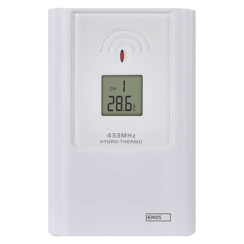 Bezdrátové čidlo pro meteostanice C8403D, E8468 a další == dosah ve volném prostoru: až 50 m|externí drátová teplotní sonda: ne|frekvence: 433 MHz|napájení: 2× 1,5 V AA (nejsou součástí balení)|prodejní obal: 1 ks, krabička|provozní teplota: -40 °C až +70 °C, rozlišení 0,1 °C|rozměr: 64 × 100 × 35 mm|ukazatel venkovní vlhkosti: 20 % až 90 % RV, rozlišení 1 %|určeno pro typ hlavní jednotky: C8403D, C8404C, C8405D, E8468, E8466