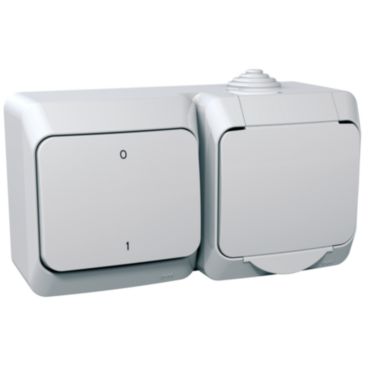 Cedar Plus IP44 - Zásuvka SCHUKO 230V 16A a spínač dvojpólový řazení 2, bílá *WDE000502 Schneider