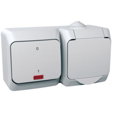 Cedar Plus IP44 - Zásuvka SCHUKO 230V 16A a spínač dvojpólový se signalizační kontrolkou řazení 2Ss, bílá *WDE000503 Schneider