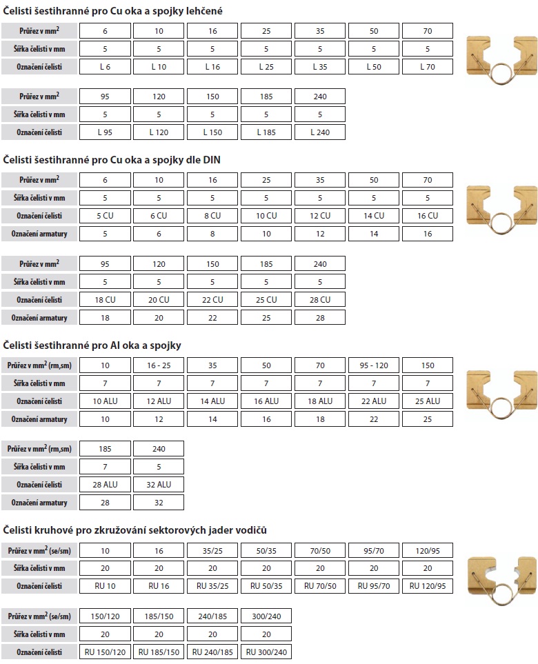 Čelisti ke K 18, HT/RH50, AP60/1, B50, oka 95-120 Al, 25 ALU
