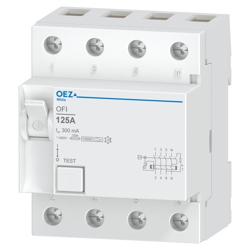 Proudový chránič OFI-125-4-300A In 125 A, Ue AC 230/400 V, Idn 300 mA, 4pól, Inc 10 kA, typ A OEZ:36837