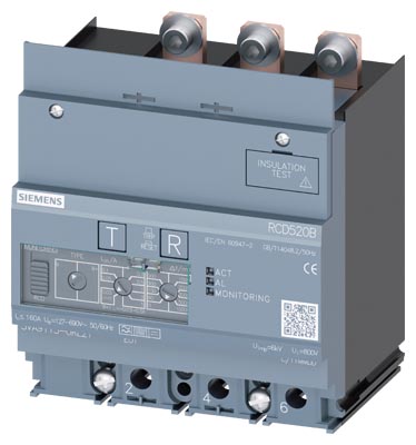 Chráničový modul 3VA9113-0RL21 provedení RCD520B, typ B, B+, Ue AC 127 ÷ 690 V / AC 100 ÷ 400 V, nastavení Idn a tdn : 0,03 ÷ 5 A; 0 ÷ 10 s, 3pól, pro 3VA11 3VA9113-0RL21