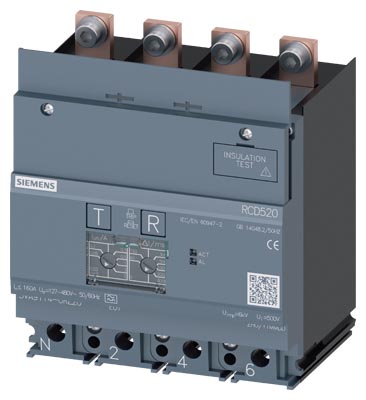 Chráničový modul 3VA9114-0RL20 provedení RCD520, typ A, Ue AC 127 ÷ 480 V / AC 100 ÷ 277 V, nastavení Idn a tdn : 0,03 ÷ 5 A; 0 ÷ 3 s, 4pól, pro 3VA11 3VA9114-0RL20