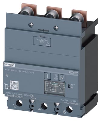 Chráničový modul 3VA9213-0RL20 provedení RCD520, typ A, Ue AC 127 ÷ 480 V / AC 100 ÷ 277 V, nastavení Idn a tdn : 0,03 ÷ 5 A; 0 ÷ 3 s, 3pól, pro 3VA12 3VA9213-0RL20