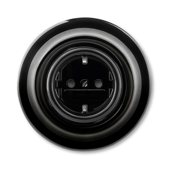 Zásuvka jednonásobná s ochrannými kontakty (podle DIN), s clonkami, bezšr. sv.; černá-porcelán   Vhodné pro designy z vypínačových řad ABB : D   Objednací číslo : 5520K-C03459 N