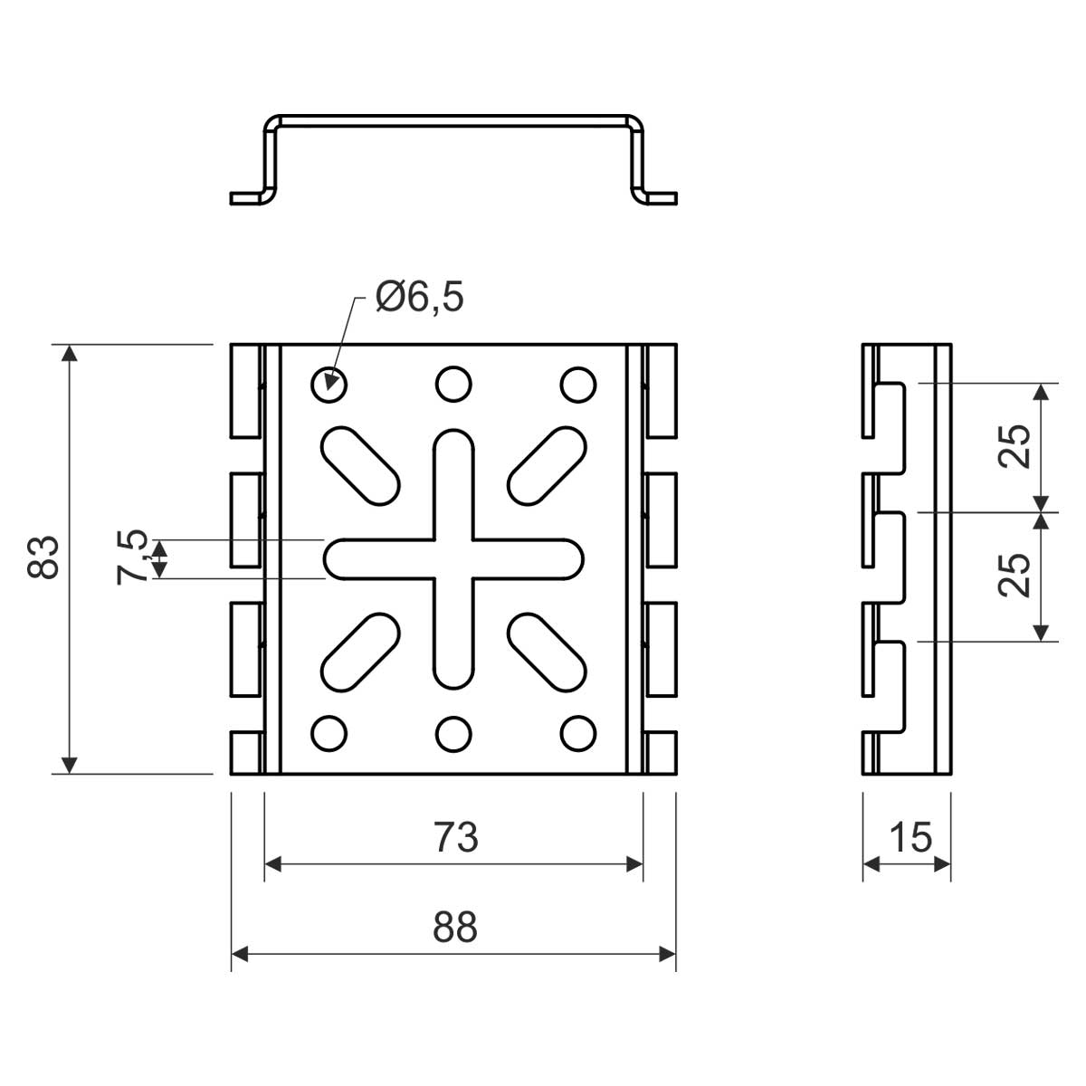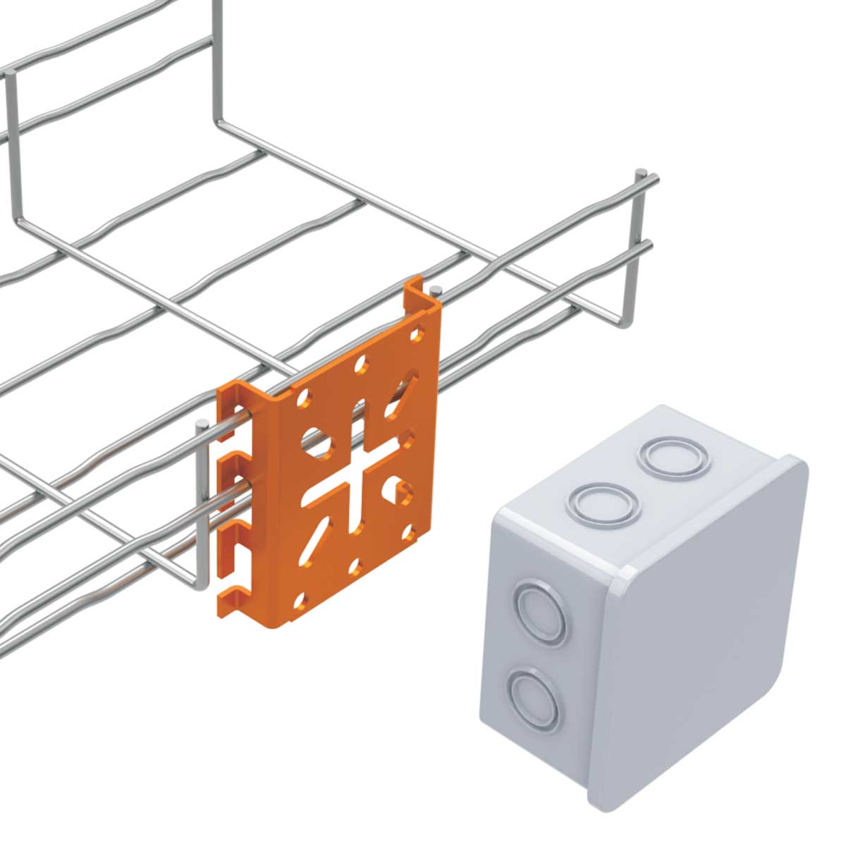 Montážní deska pro montáž elektroinstalačních krabic, vhodná pro drátěné kabelové žlaby s výškou bočnice 60 a 110 mm, povrchová úprava žárový zinek