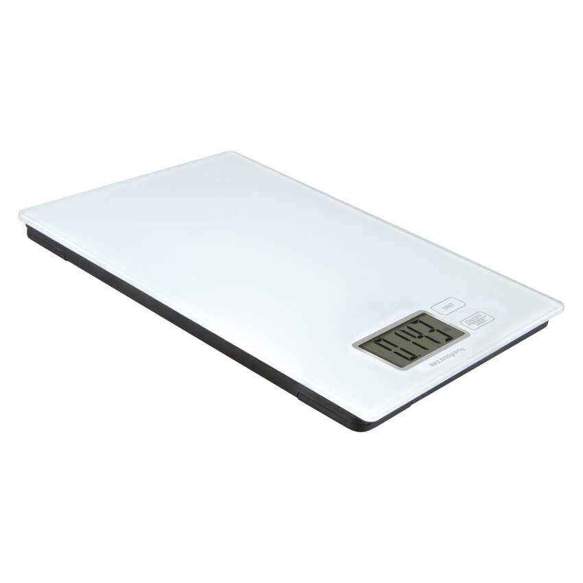 Digitální kuchyňská váha EV014, bílá == automatické vypnutí: po 2 minutách|barva: bílá|Bluetooth: ne|BMI index – měření tuku, vody a svalové hmoty: ne|funkce dovažování: ano|indikace slabých baterií: ano|indikátor přetížení: ano|jednotky váhy: g, oz, lb, kg|LCD displej: ano|max. zátěž: 5 kg|napájení: 1× 3 V CR2032 (součástí balení)|paměť: ne|podsvícený displej: ne|povrch váhy: tvrzené sklo|přesnost vážení: 1 g|prodejní obal: 1 ks, krabička|produkt: kuchyňská váha|rozměr: 15 × 152 × 219 mm