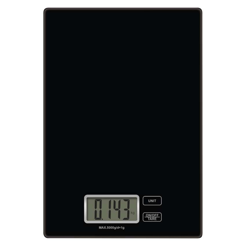 Digitální kuchyňská váha EV014B, černá == automatické vypnutí: po 2 minutách|barva: černá|Bluetooth: ne|BMI index – měření tuku, vody a svalové hmoty: ne|funkce dovažování: ano|indikace slabých baterií: ano|indikátor přetížení: ano|jednotky váhy: g, oz, lb, kg|LCD displej: ano|max. zátěž: 5 kg|napájení: 1× 3 V CR2032 (součástí balení)|paměť: ne|podsvícený displej: ne|povrch váhy: tvrzené sklo|přesnost vážení: 1 g|prodejní obal: 1 ks, krabička|produkt: kuchyňská váha|rozměr: 15 × 152 × 219 mm