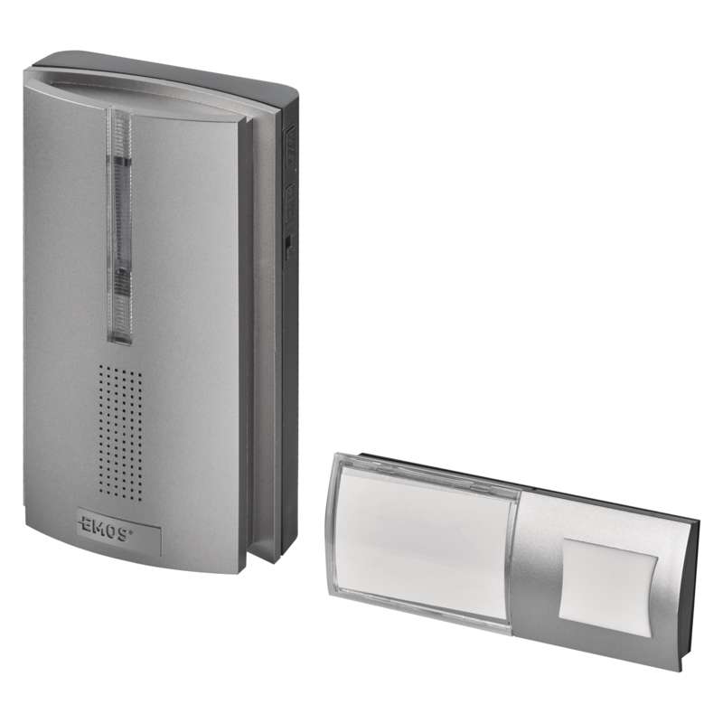 Domovní bezdrátový zvonek P5763 na 3x AA, s možností prodloužení signálu == barva: stříbrná|dosah tlačítka: 120 m|maximální hlasitost zvonění: 85 dB|možnost přidat další tlačítko: ano, max. 8|napájení hlavní jednotky: 3× 1,5 V AA (nejsou součástí balení)|napájení tlačítka: 1× 3 V CR2032 (součástí balení)|optická signalizace na tlačítku: ano|optická signalizace na zvonku: ano|počet melodií: 16|počet přijímačů v balení: 1 ks|počet tlačítek v balení: 1 ks|přenosová frekvence: 433 MHz|přídavné (náhradní) tlačítko: P5760T|prodejní obal: 1 ks, blistr|regulace hlasitosti: ano, 5 úrovní|rozměr tlačítka: 15 × 101 × 39 mm|rozměr zvonku: 34 × 65 × 116 mm|speciální funkce: funkce repeater – umožňuje prodloužit dosah tlačítka o několik stovek metrů navíc.|voděodolné tlačítko: IP44|způsob párování: automatické párování – self-learning|způsob přenosu: bezdrátový zvonek