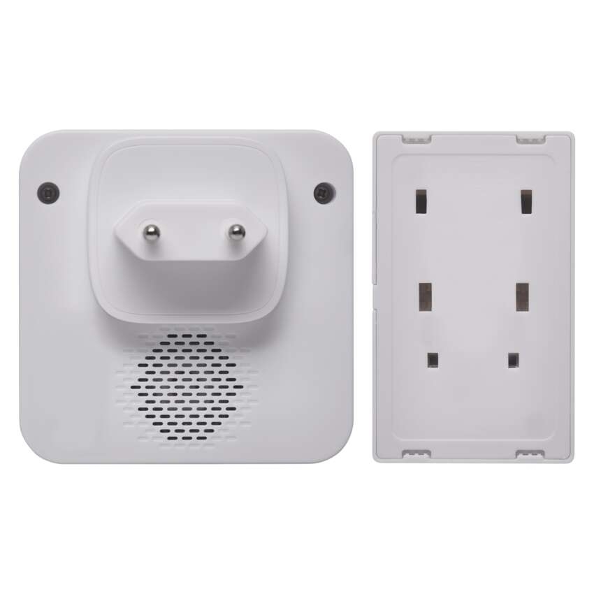 Bezbateriový domovní bezdrátový zvonek P5729 do zásuvky == barva: bílá|dosah tlačítka: 180 m|maximální hlasitost zvonění: 90 dB|možnost přidat další tlačítko: ano, max. 6|napájení hlavní jednotky: 230 V AC|napájení tlačítka: bez napájení|optická signalizace na tlačítku: ano|optická signalizace na zvonku: ano|počet melodií: 36|počet přijímačů v balení: 1 ks|počet tlačítek v balení: 1 ks|přenosová frekvence: 433 MHz|přídavné (náhradní) tlačítko: P5729T|prodejní obal: 1 ks, blistr|regulace hlasitosti: ano, 4 úrovně|rozměr tlačítka: 22 × 49 × 82 mm|rozměr zvonku: 73 × 73 × 81 mm|speciální funkce: bezbateriové tlačítko|voděodolné tlačítko: IP44|způsob párování: automatické párování – self-learning|způsob přenosu: bezdrátový zvonek