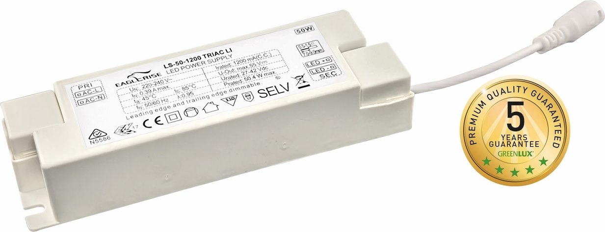 tento DRIVER TRIAC 50W 1200mA - LED driver je také napájecí součást pro LED svítidlo s výše uvedenými technickými hodnotami