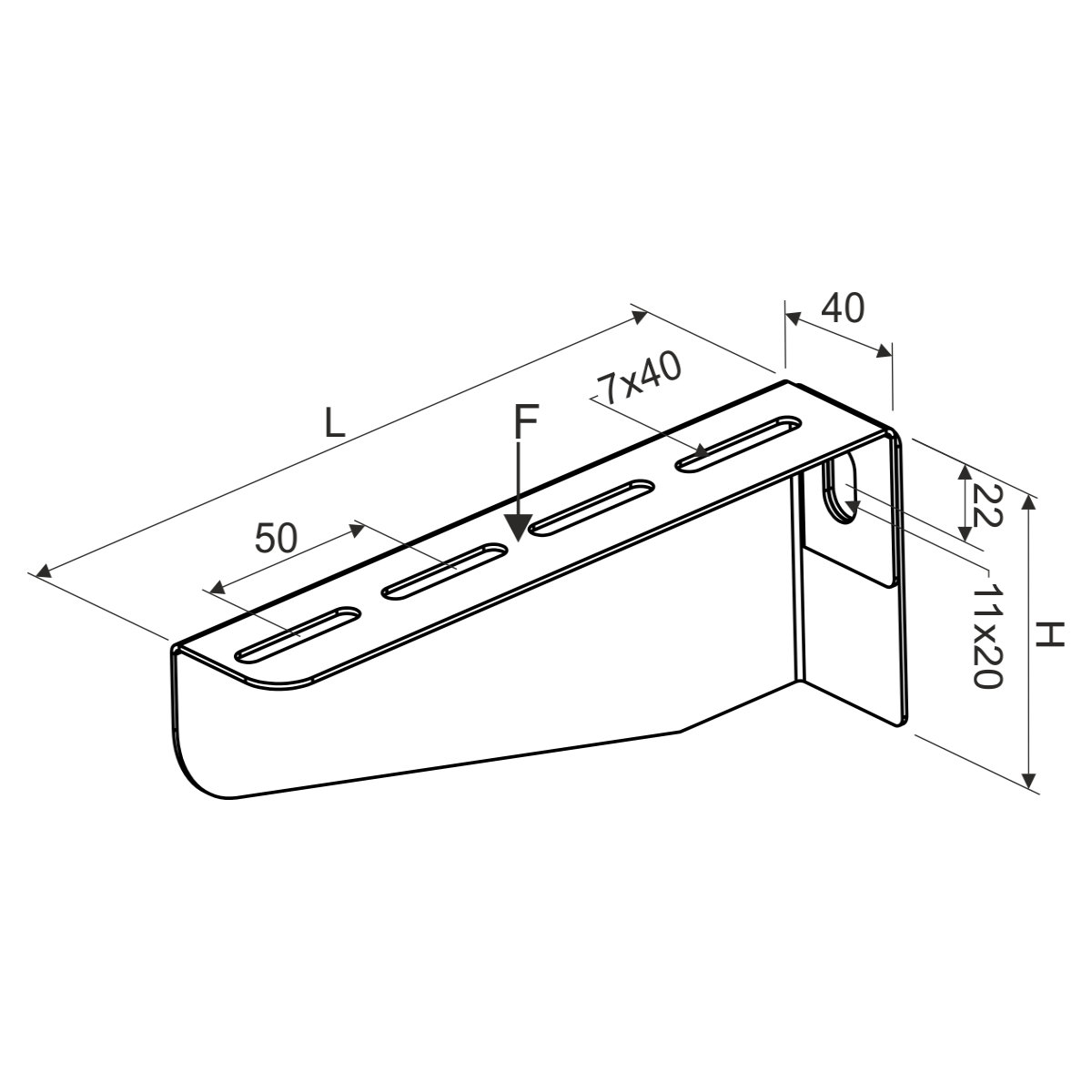 Držák pro instalaci kabelových žlabů na stěnu, určeno pro kabelové trasy o šířce 150 mm