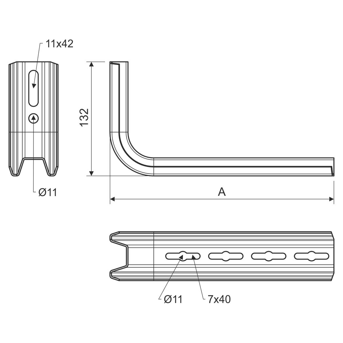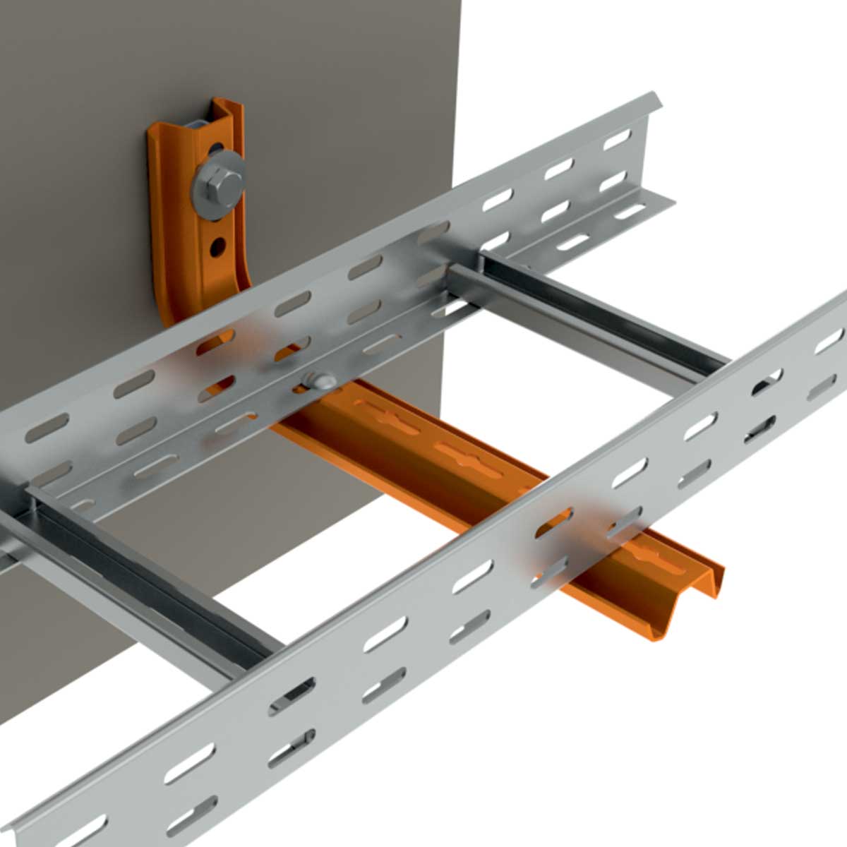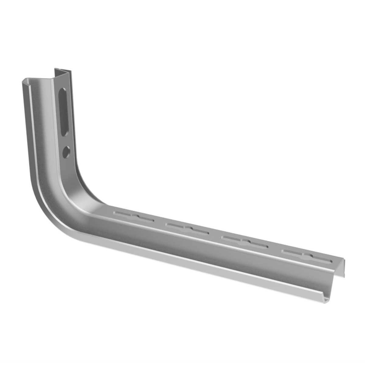 Držák typu L pro montáž kabelového žlabu šířky 200 mm ke stěně. Profilovaný držák pro zajištění vyšší pevnosti. Pro vyloučení deformací je určena výztuha STS.