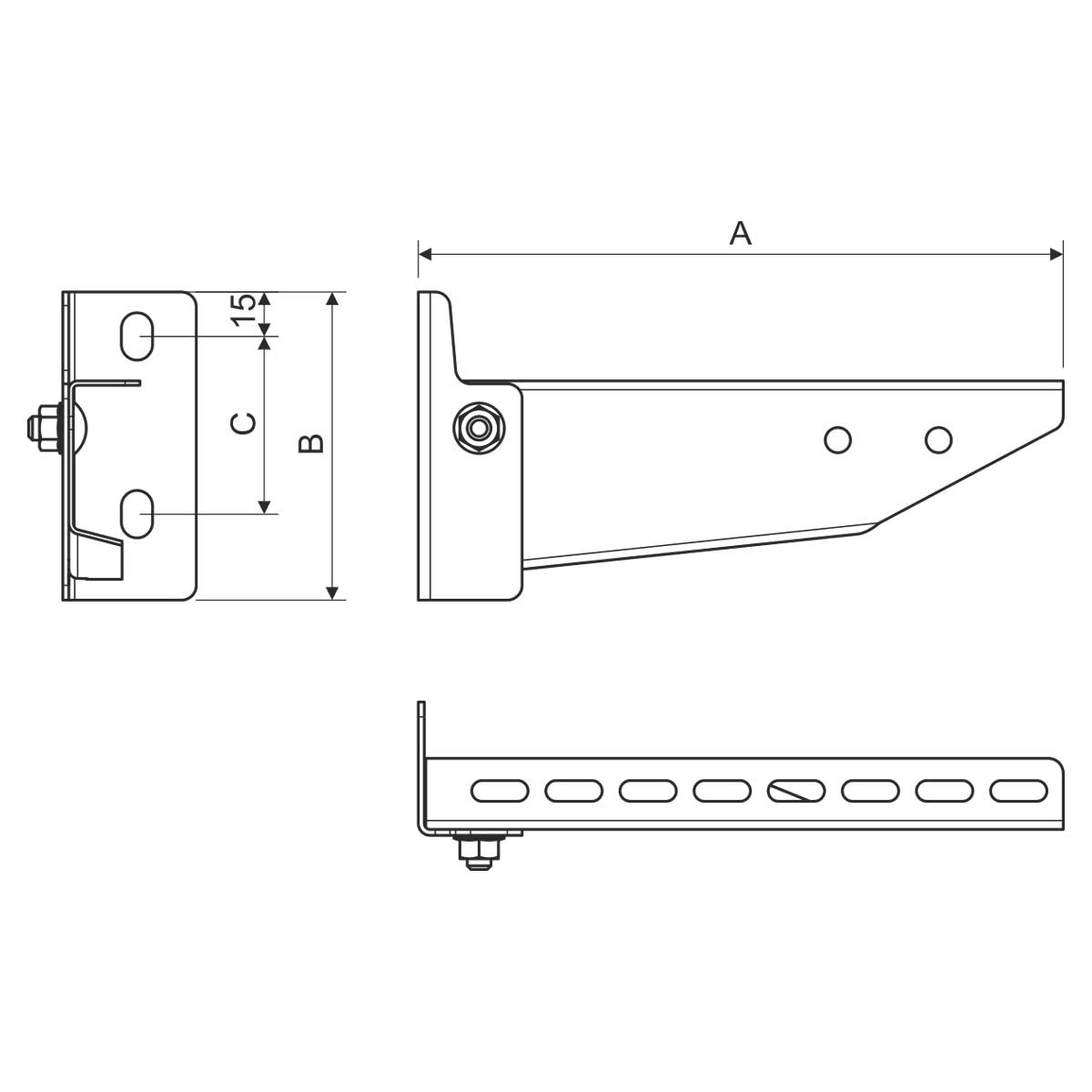 Držák pro montáž kabelových tras šíře 500 mm na stěny, střední mechanická únosnost, povrchová úprava sendzimir