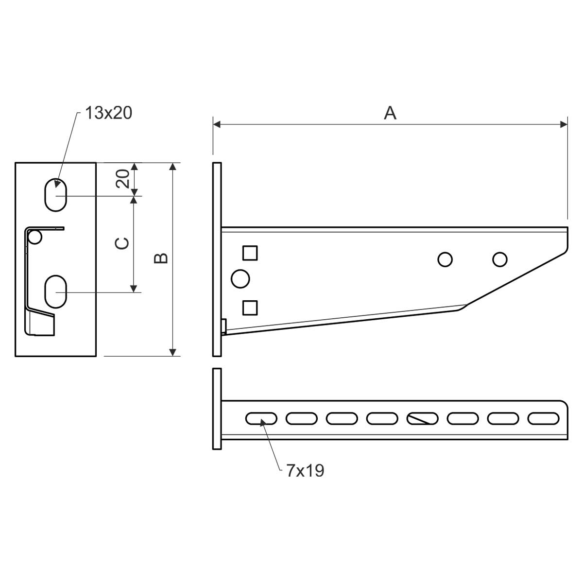 Držák pro montáž kabelových tras šíře 150 mm nebo více kabelových tras do celkové šíře 150 mm  na stěny, vyšší mechanická únosnost, povrchová úprava žárový zinek