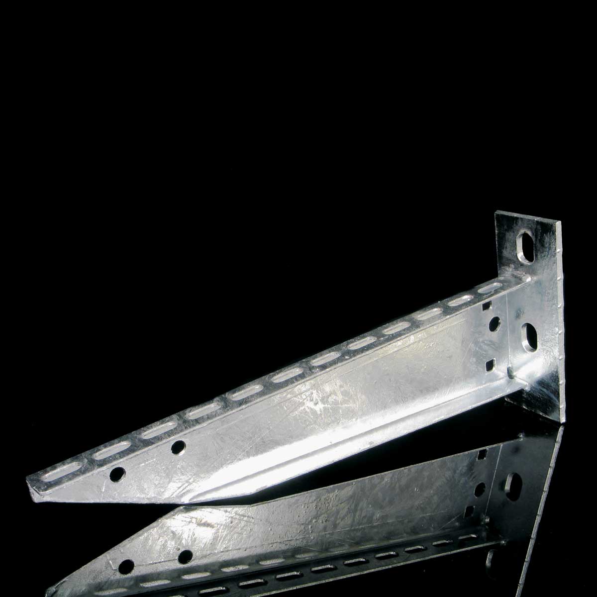 Držák pro montáž kabelových tras šíře 500 mm nebo více kabelových tras do celkové šíře 500 mm  na stěny, vyšší mechanická únosnost, povrchová úprava žárový zinek