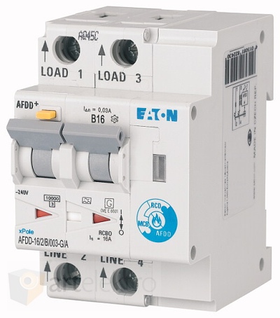 Eaton AFDD-32/2/C/003-G/A Proudový chránič s naproud. a oblouk. ochranou, In=32A, char.C, 6kA, Idn=0.03A, typ G/A *MB-300158