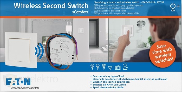 Eaton CPAD-00/215 RF Spínací sada rekonstrukce (spínací aktor 10A s bin.vstupem + 2b. tlač EATON lesklá bílá 55x55mm) *193730