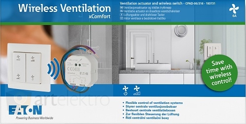 Eaton CPAD-00/216 RF Ventilační sada (rolet.aktor 6A + 2b.tlač s potiskem lesklá bílá) Rychl: stř/vys, Čas: 10/30min *193731