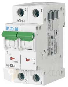 Eaton FAZ-D10/2 Jistič FAZ, char D, 2-pólový, In=10A, Icu=15kA (ČSN EN 60947-2) *278779