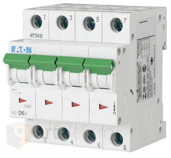 Eaton FAZ-D63/4 Jistič FAZ, char D, 4-pólový, In=63A, Icu=10kA (ČSN EN 60947-2) *115377