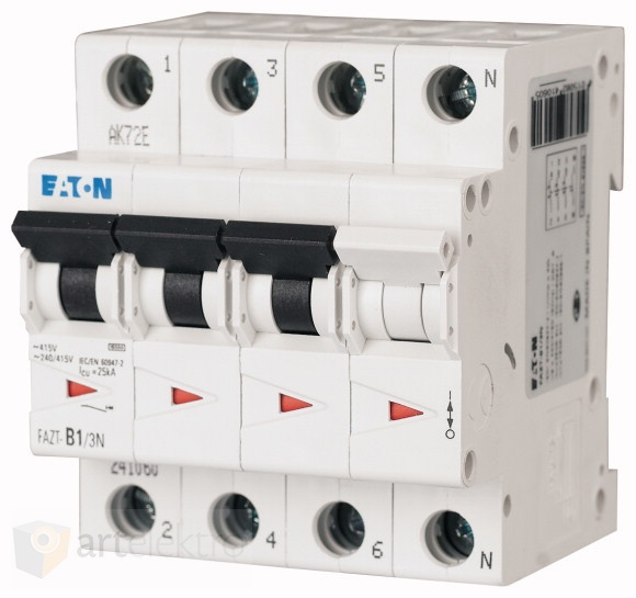 Eaton FAZT-D32/3N Jistič FAZT, char D, 3+N-pólový, Icu=15kA (ČSN EN 60947-2), In=32A *142523