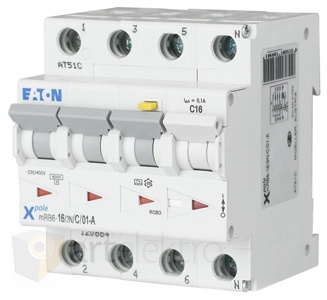 Eaton mRB6-16/3N/B/003-A Chránič s nadproud.ochranou, Ir=250A, typ A, 3+N, 6kA, char B, In=16A, Idn=0.03A *120652