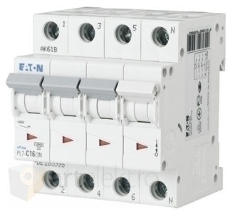 Eaton PL7-B16/3N Jistič PL7, char B, 3+N-pólový, Icn=10kA, In=16A *263985