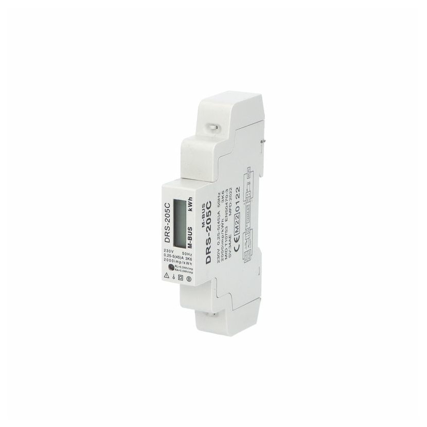 Podružný 1-fázový 1-tarifní digitální elektroměr pro přímé fakturační měření DRS-205C 45A MID, M-BUS, 1mod. Certifikace MID.