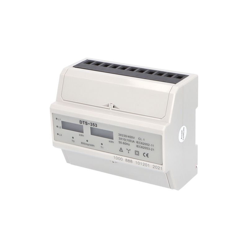 Podružný 3-fázový 2-tarifní digitální elektroměr pro přímé informativní měření DTS 353-L, 100A, 7mod.