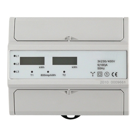Elektroměr EDIN 372L, 100A, 7modulový, podružný, 3-fázový, 2-tarifní, LCD.