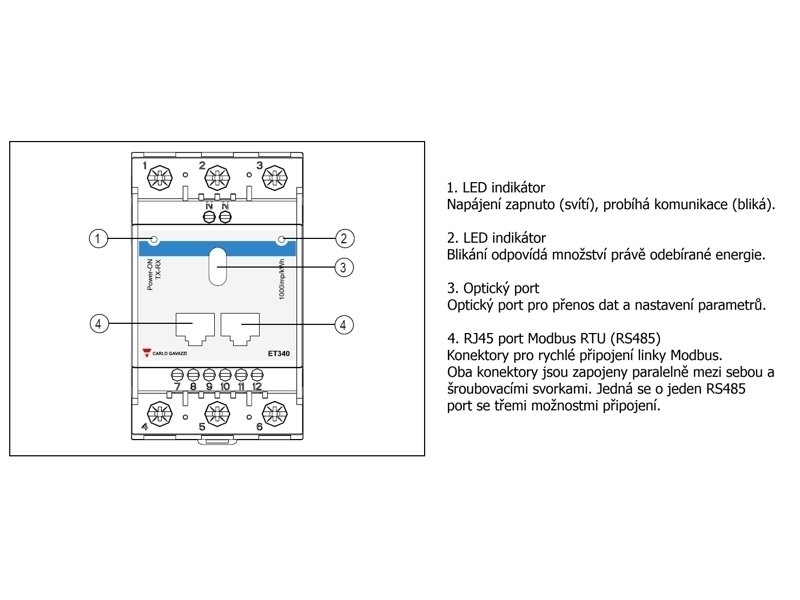 Elektroměr ET340DIN-AV23X-S1X třífázový dvojtarifní 3X65A bez displeje Carlo Gavazzi