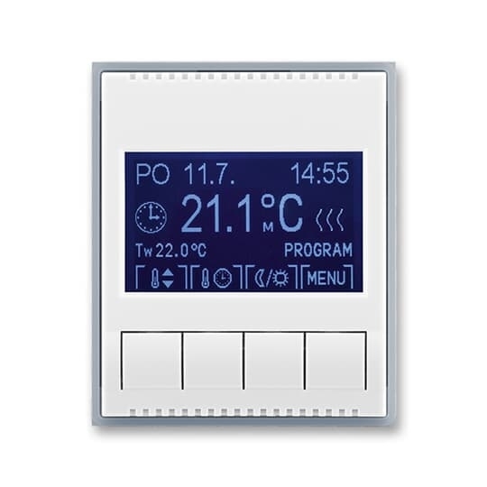 Termostat univerzální programovatelný (ovládací jednotka); bílá/ledová šedá   Vhodné pro designy z vypínačových řad ABB : E   Objednací číslo : 3292E-A10301 04