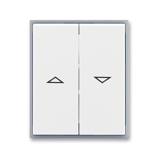 Kryt spínače žaluziového kolébkového, dělený, s potiskem; bílá/ledová šedá   Vhodné pro designy z vypínačových řad ABB : E   Objednací číslo : 3558E-A00662 04