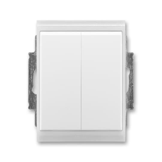 Přepínač dvojitý střídavý, řazení 6+6, IP44; bílá/ledová bílá Vhodné pro designy z vypínačových řad ABB : E,F Objednací číslo : 3558E-A52940 01